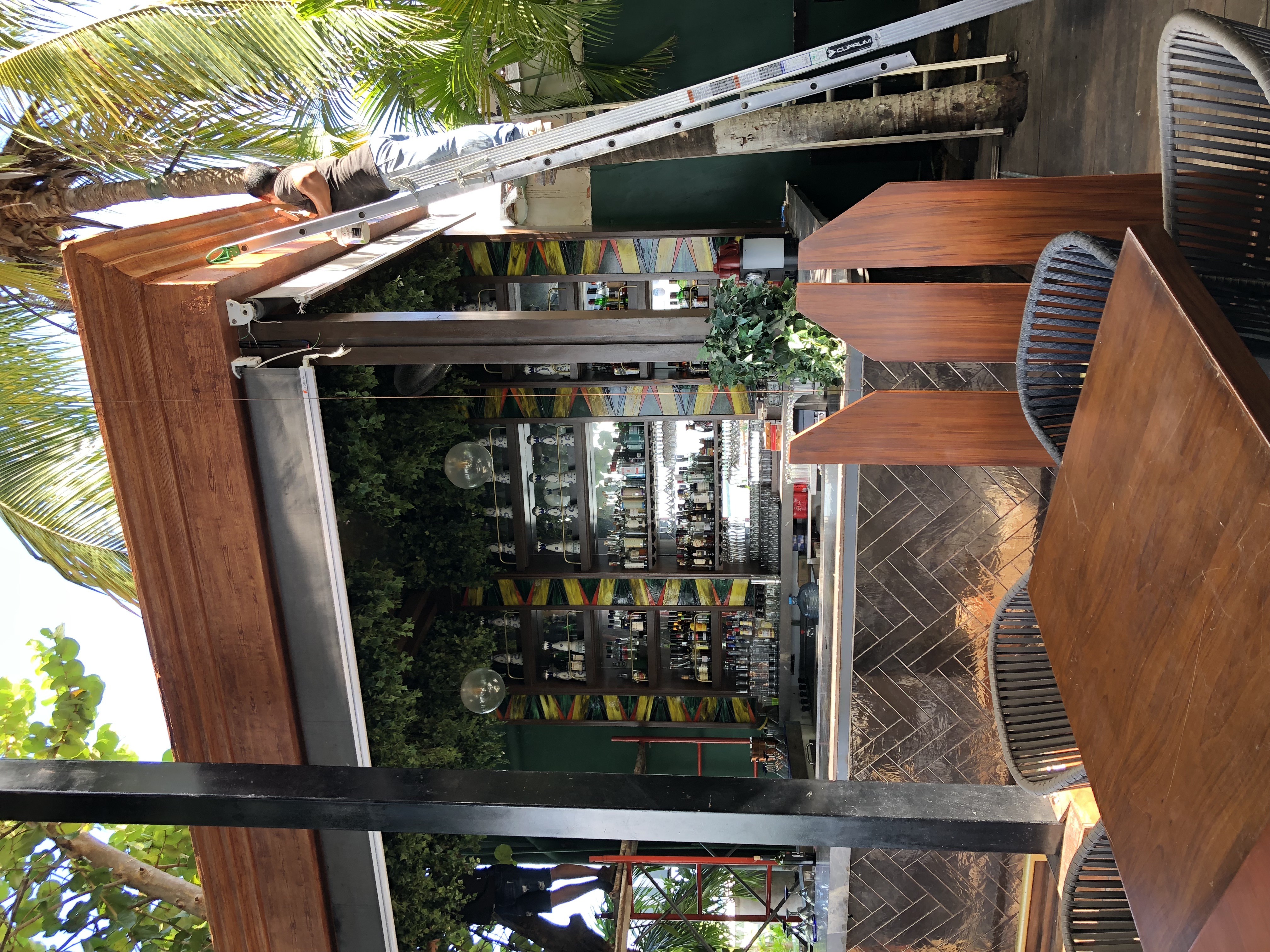 Una de las principales ventajas del Scumble de Colortek es su bajo mantenimiento y resistencia a los elementos. A diferencia de la madera natural, el Scumble no se ve afectado por el tiempo, la humedad o los insectos. Al estar sellado, no es propenso al moho, hongos ni descomposición. Esto significa que el casetón de madera simulada en el bar del restaurante Porfirio?s conservará su apariencia impecable a lo largo del tiempo, sin requerir los cuidados y costos asociados con la madera natural.